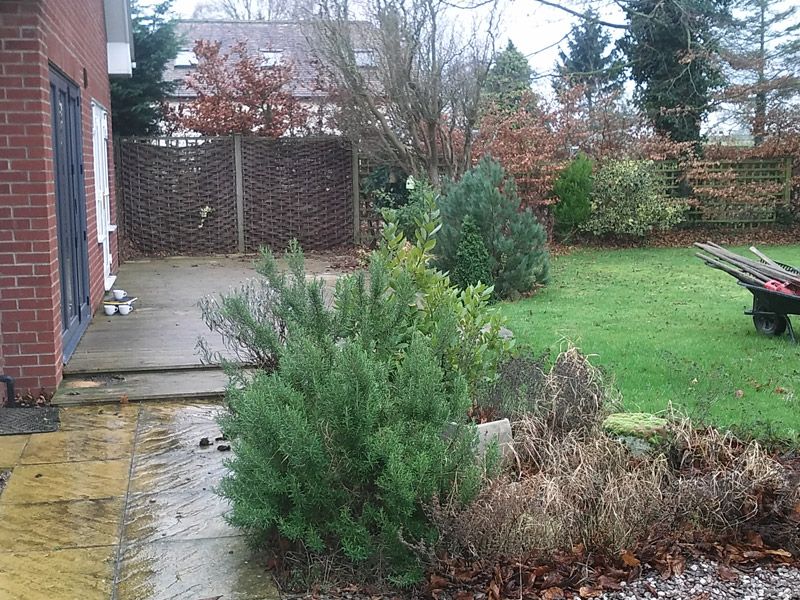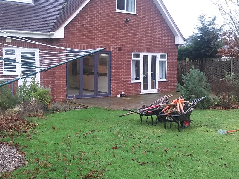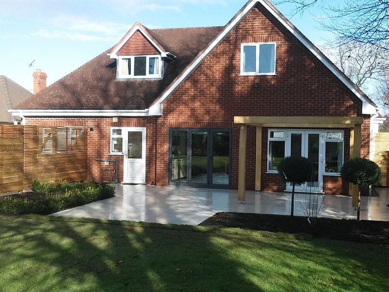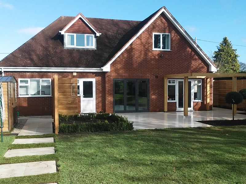 The brief here was to transform an otherwise dull and fairly standard, rural back garden, mainly lawned, to a crisp and sharp contemporary and visually striking external work of art.