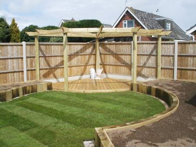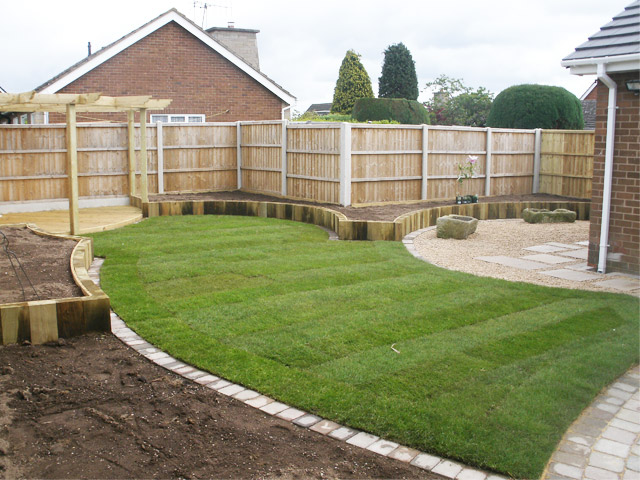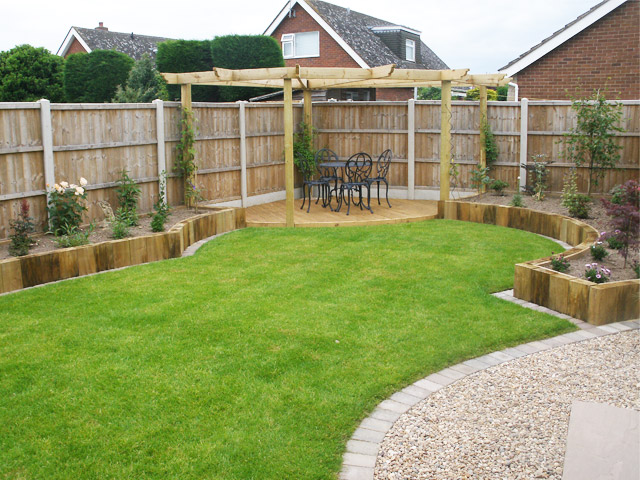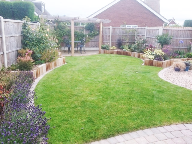 The Clients brief for this project was for us to introduce shape and interest into a very dull, flat, square space.  The customer preferred the look of softer materials and desperately needed a sunnier location to sit and view the garden than the shady patio at the rear of the house. The clients wish was for a traditionally planted, cottage style garden with a shapely clean cut appearance.